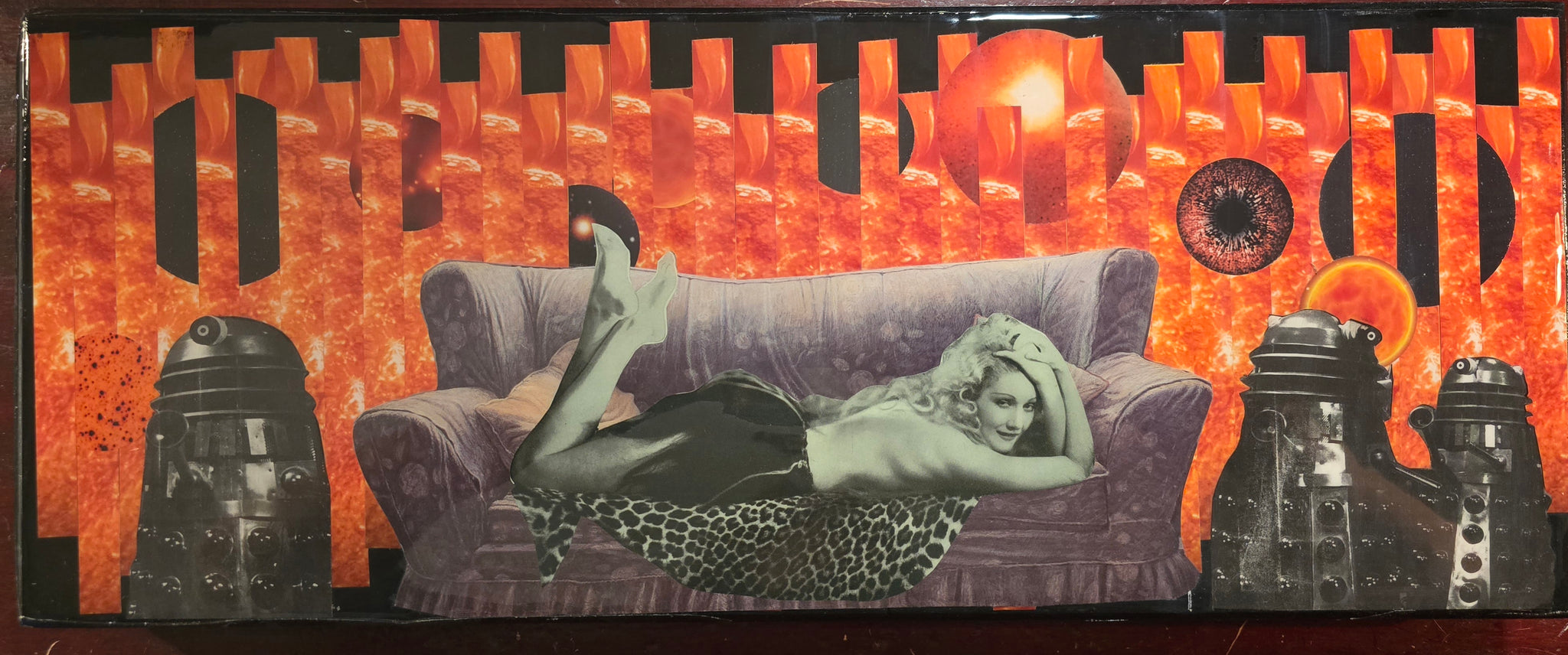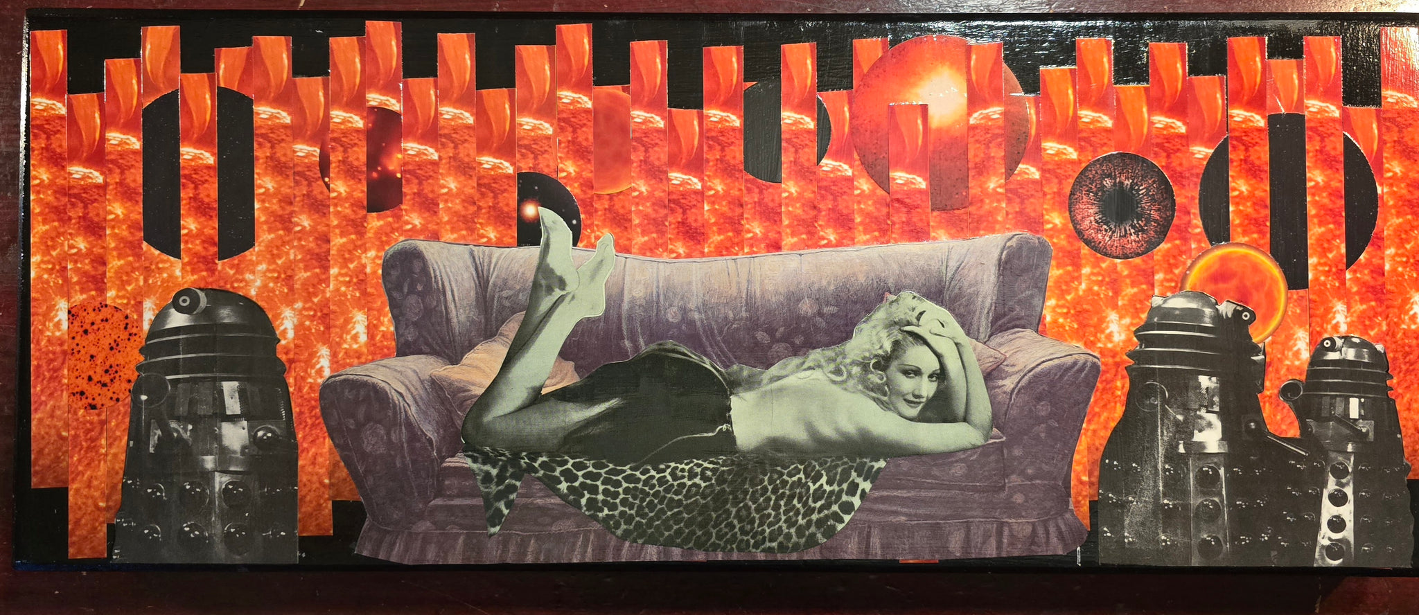 Collage block finished with poured resin.